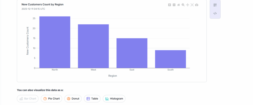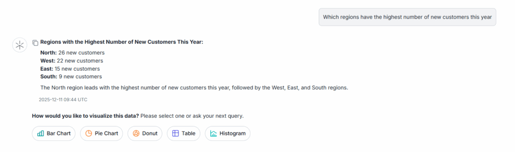 Examples:- “Show monthly revenue by region for the last 12 months.”
